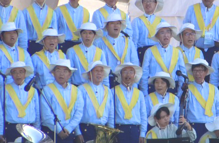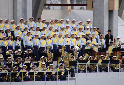 | 今回の録音は,開会式など雨天の場合に流す為のものだそうです。当日晴れれば,天皇皇后両陛下の前で歌うことに なっています。 |